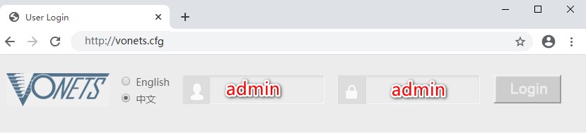 2. 电脑连接后,打开浏览器,在地址栏输入http://vonets.cfg